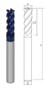 Long Shank End Mill/4Flutes Item CodeOutside DiameterFlute LengthOverall LengthShank Diameter