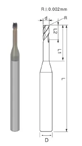 Micro Diameter 4 Flutes Rib Corner Radius End Mill