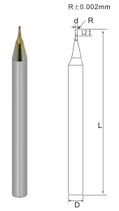 Micro Diameter Miniature 2 Flutes Ball Nose End MillItem CodeRadiusFlute LengthOverall LengthShank Diameter
