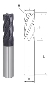 4 Flutes Corner Radius End MillItem CodeFlute DiameterRFlute LengthOverall LengthShank Diameter