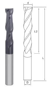 Long Shank End Mill /2 Flutes Item CodeOutside DiameterFlute LengthOverall LengthShank Diameter