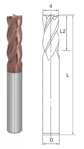 | 4Flutes Square End Mill | Item Code | Outside Diameter | Flute Length | Overall Length | Shank Diameter |