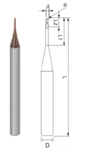 | Micro Diameter Miniature 2 Flutes Rib Ball Nose End Mill | Item Code | Radius | Flute Length | Effective Length | Overall Length | Shank Diameter |