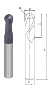 | 2 Flutes Ball Nose End Mill | Item Code | Radius | Flute Length | Overall Length | Shank Diameter |