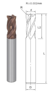 4 Flutes Corner Radius End MillItem CodeFlute DiameterRFlute LengthOverall LengthShank Diameter