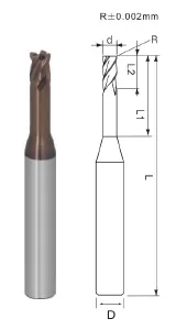 Micro Diameter 4 Flutes Rib Corner Radius End Mill