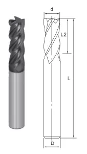| 4 Flutes Unequal Spiral End Mill | Item Code | Outside Diameter | Flute Length | Overall Length | Shank Diameter |