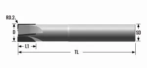 | Código del artículo | Diámetro exterior | Diámetro del vástago | Longitud de flauta | Longitud total |
