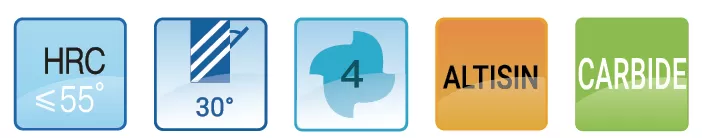 | Fresa de mango largo con radio de esquina/4 filos | Código del artículo | Diámetro de la flauta | R | Longitud de flauta | Longitud total | Diámetro del vástago |