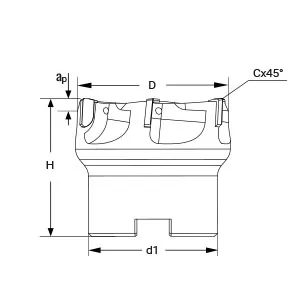 | N° de commande | D [mm] | d1 [mm] | H [mm] | Cx45° | Z | apmax. | Helix angle | Weight (KG) |