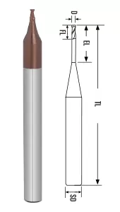 | Micro Diameter Miniature 2 Flutes End Mill | Code de l'article | D h7[mm] | FL[mm] | TL[mm] | SD h6[mm] |