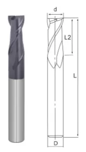 | 2 Flutes Square End Mill | Item Code | Outside Diameter | Flute Length | Overall Length | Shank Diameter |
