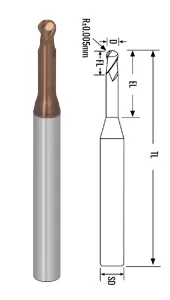 | Micro Diameter 2 Flutes Rib Ball Nose End Mill | Item Code | R (¹/2 D)[mm] | EL[mm] | FL[mm] | TL[mm] | SD h6[mm] |