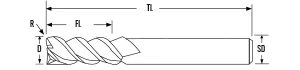 Fresa de topo de raio de canto com 3 flautas para alumínio