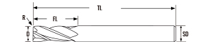 Long Shank Corner Radius End Mill/ 4 Flutes
